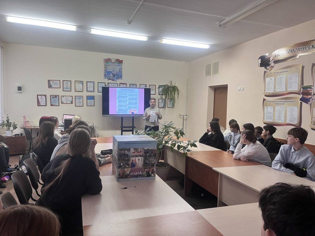 09.10.2024г.-в рамках декады правовых знаний состоялся открытый диалог зам.начальника РОСК Маршалова А.О. с уч-ся 9-11 классов по актуальным темам: “Профилактика участия несовершеннолетних в несанкционированных мероприятиях и сообществах”, “Уголовная и административная ответственность несовершеннолетних”, “Безопасный интернет”, “Профилактика половой неприкосновенности, экстремизма, терроризма”, разьяснены ст.212,222,328 УК РБ и др.